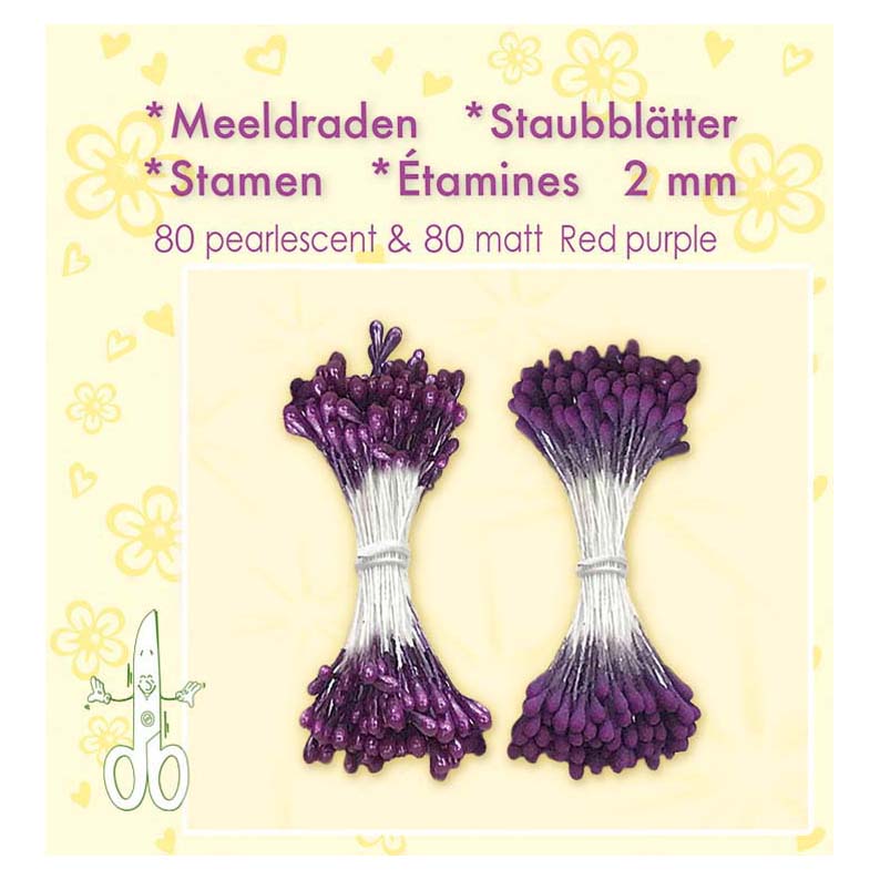 These stamens are a perfect embellishment for your foam flowers! Includes 160 stamen, 2mm each. 80 pearlescent & 80 matte red purple.